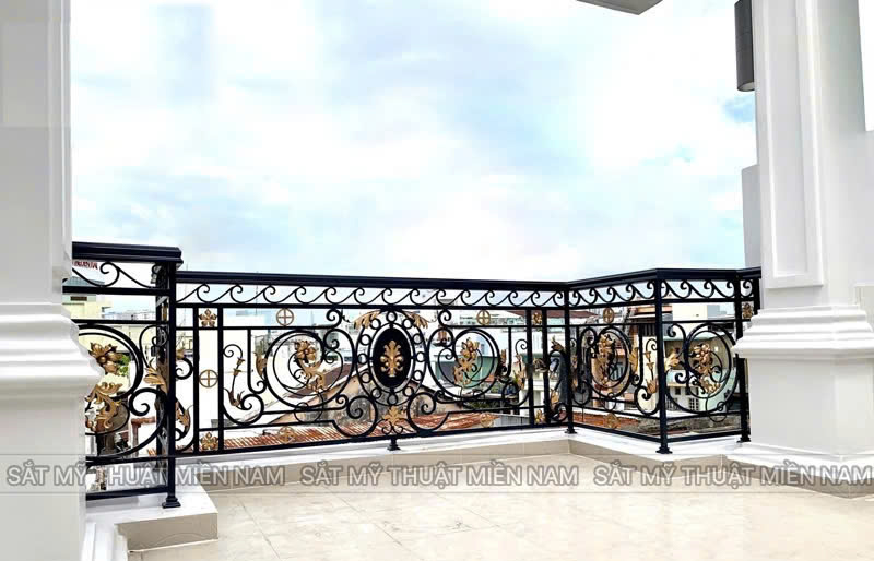 - Kết Hợp Với Kính Cường Lực: Việc lồng ghép các tấm kính cường lực trong suốt vào giữa các khung sắt mỹ thuật là một xu hướng đang rất được ưa chuộng. Giải pháp này vừa giữ được nét đẹp nghệ thuật của sắt, vừa tối ưu tầm nhìn, tạo cảm giác không gian được mở rộng và tràn ngập ánh sáng tự nhiên.